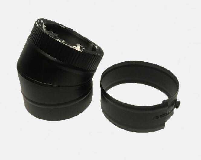 Kachelpijp Dubbelwandig Zwart Bocht 150 Ø | 30º