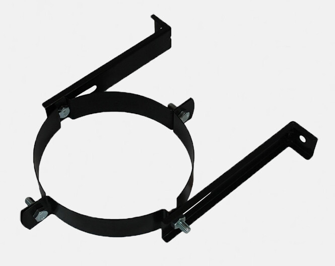 Kachelpijp Dubbelwandig Zwart Muurbeugel 150 Ø | 50-100 mm. Verstelbaar van 50 tot 100 mm vanaf de bevestigingsmuur.