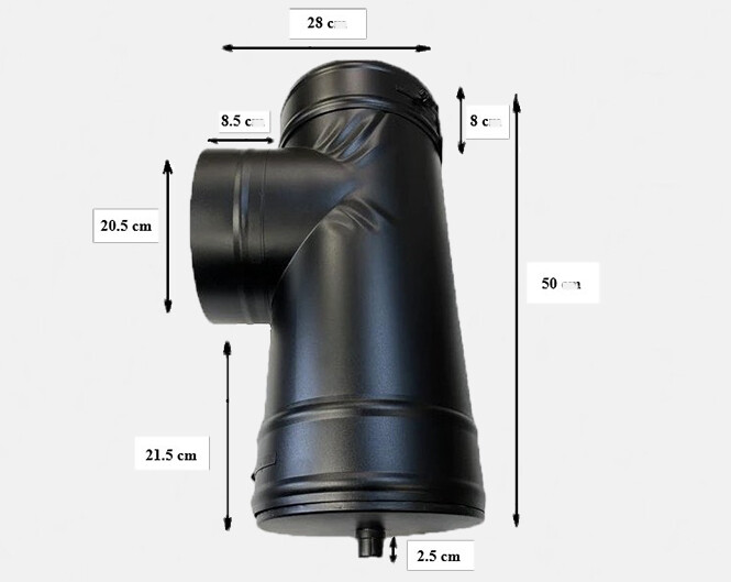 Kachelpijp Dubbelwandig Zwart T-Stuk. Diameter 150 mm.