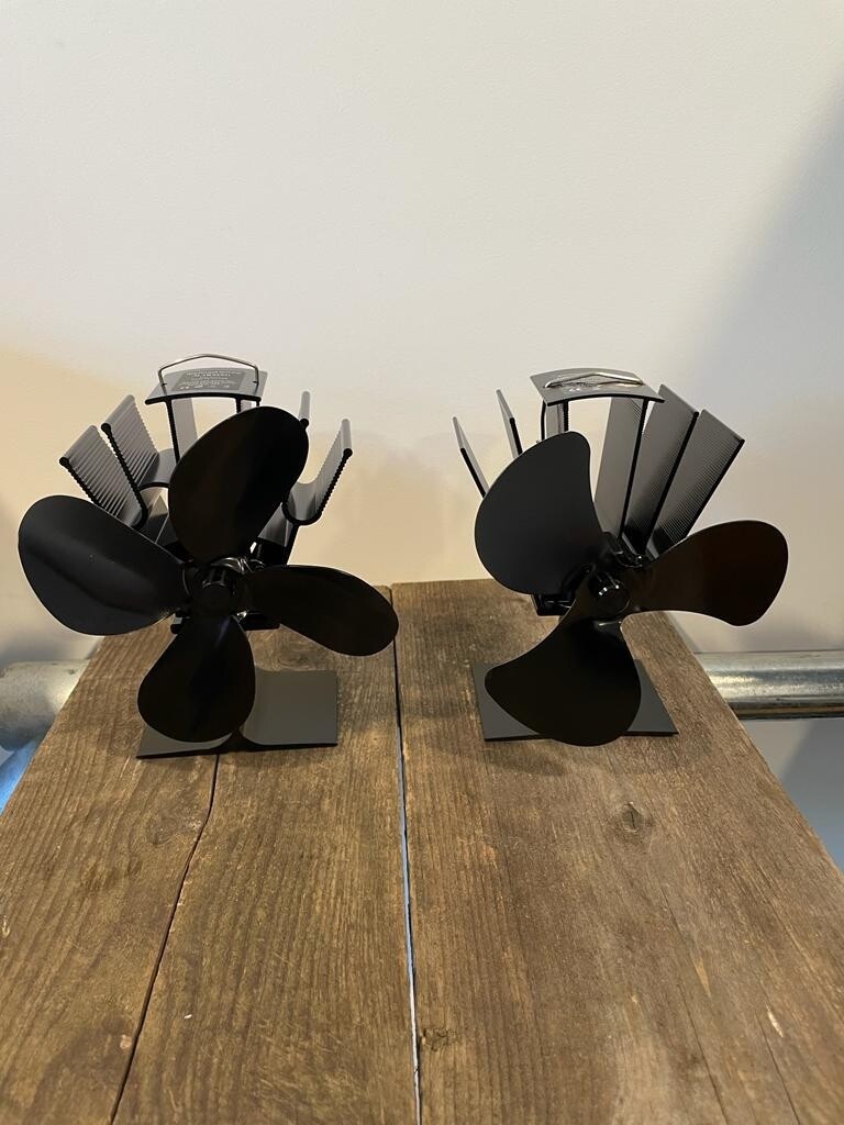 De ventilator gaat draaien zodra de voet heet wordt, hij moet daarom dus op de kachel geplaatst worden