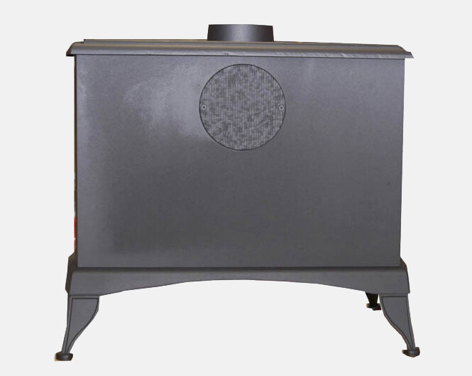 Deze houtkachel heeft zowel een bovenaansluiting als achteraansluiting.