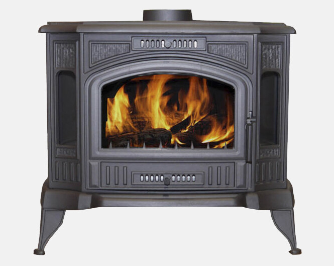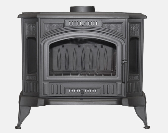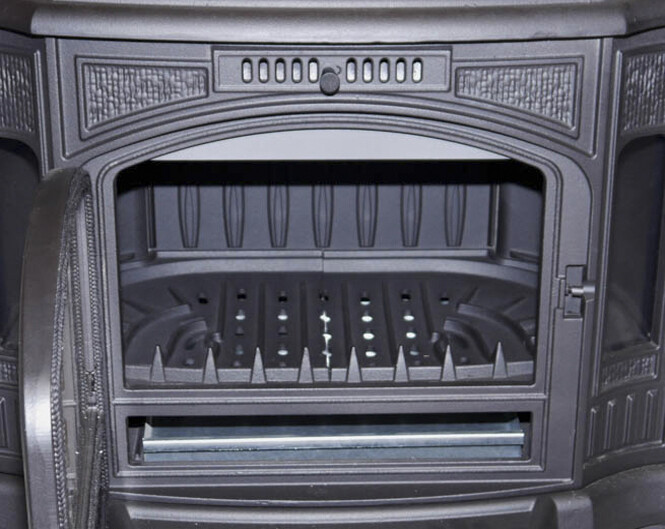 Deze kachel heeft een degelijk brandbed waarop gestookt wordt, een aslade en een keerplaat boven de kachel.