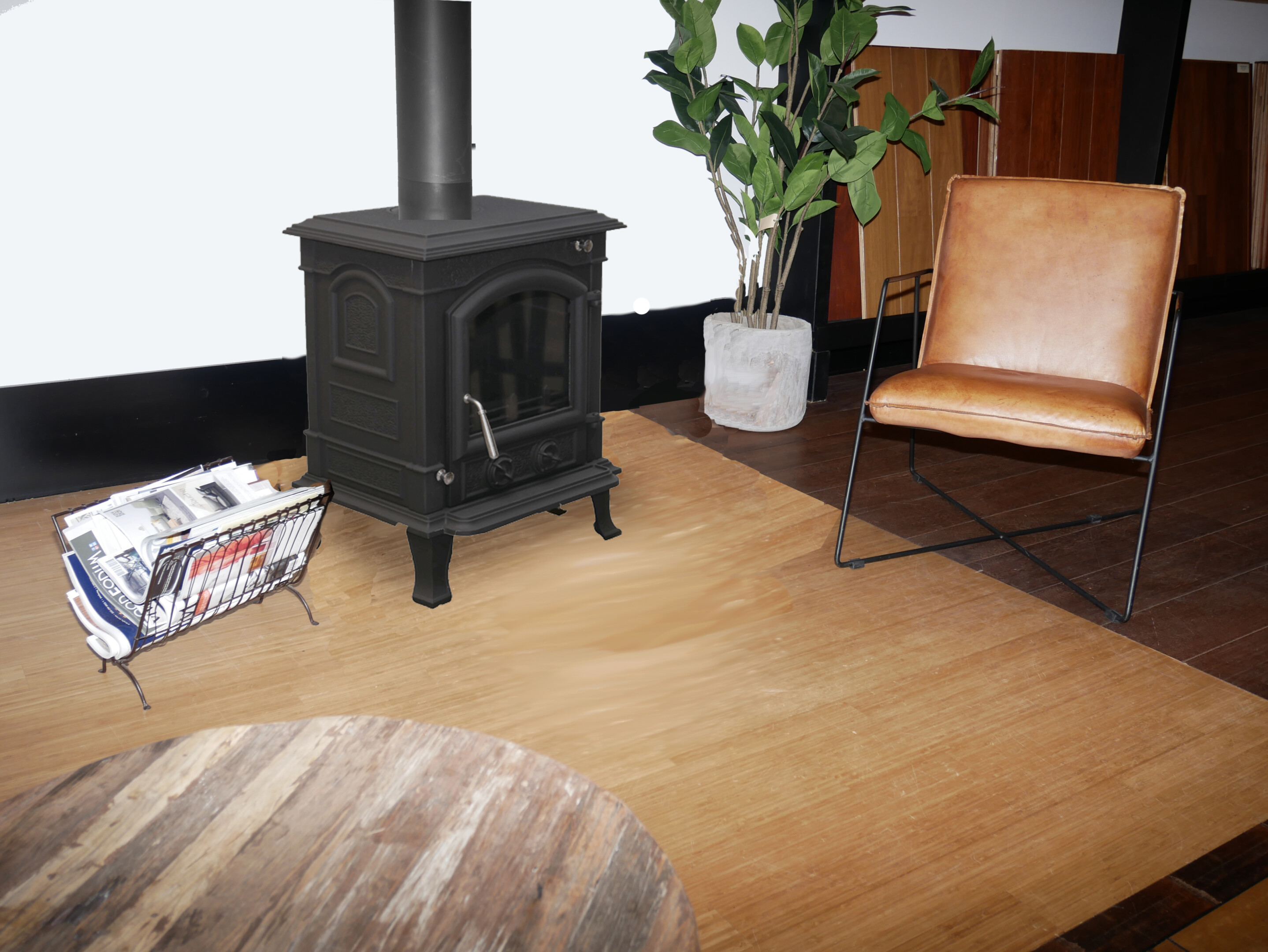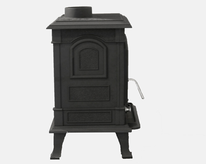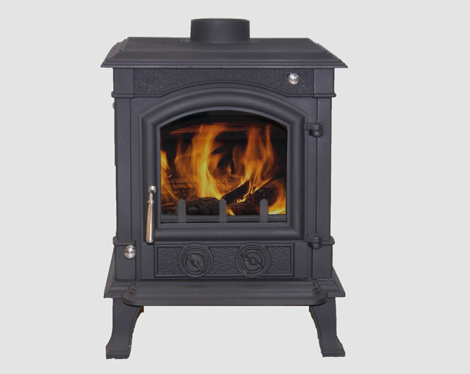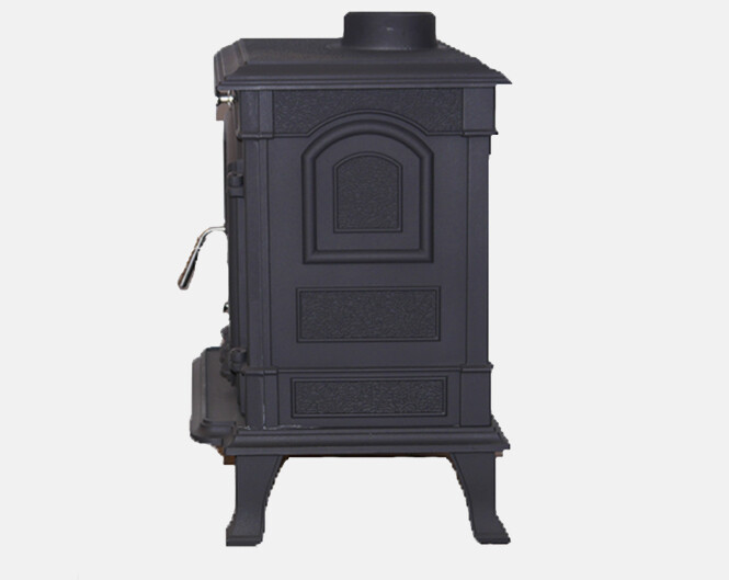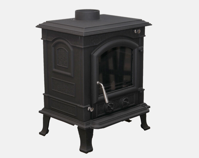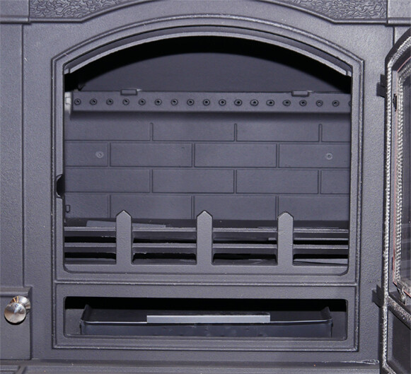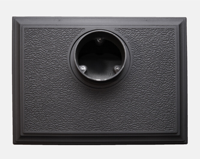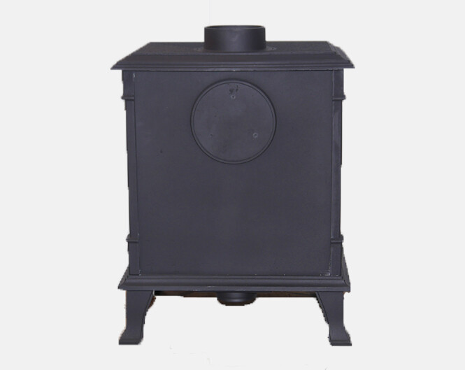 Deze houtkachel heeft zowel een boven- en achter aansluiting.