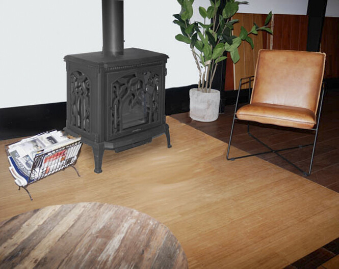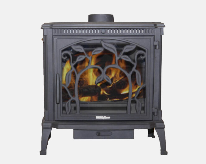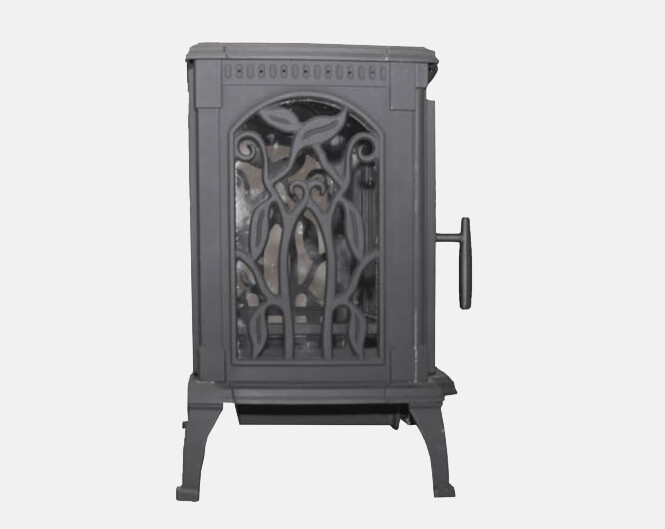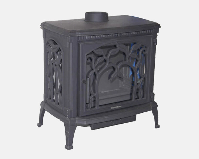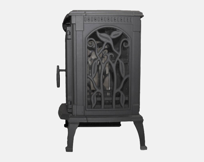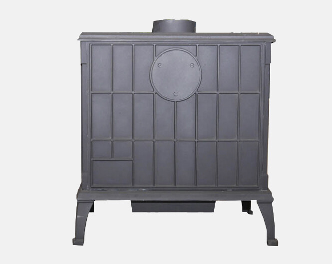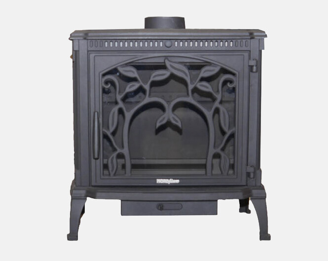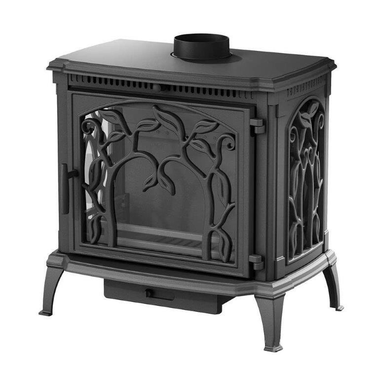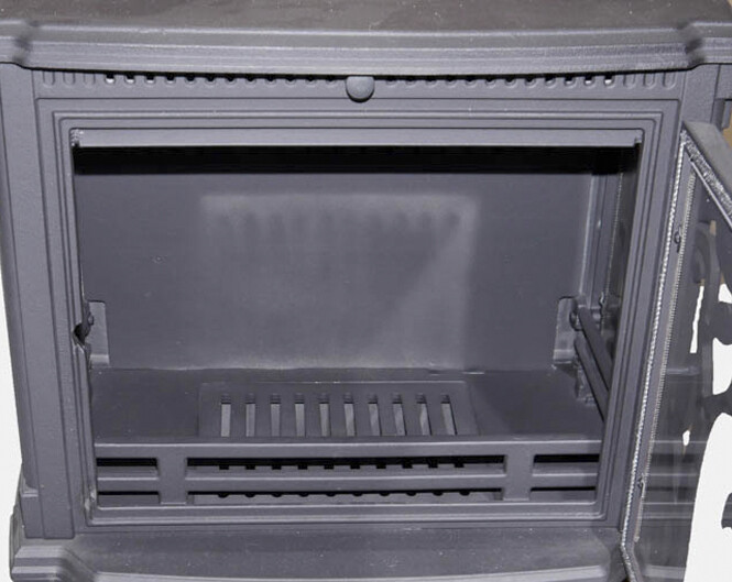Deze houtkachel heeft zowel een boven- en achter aansluiting.