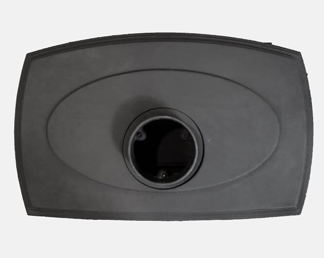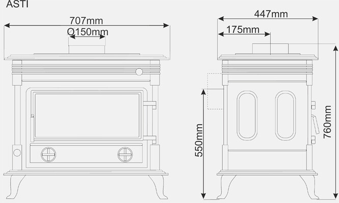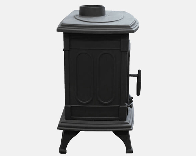 Deze houtkachel heeft zowel een boven- en achter aansluiting.