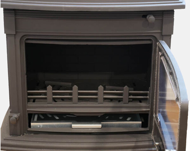 Deze kachel heeft een brandbed en schutrooster waarop gestookt wordt, een grote aslade en een keerplaat boven de kachel. Ook heeft deze kachel heeft een extra lucht toevoer aan de onderkant om extra lucht te kunnen aanzuigen. Daarnaast is deze houtkachel ook voorzien van een schudrooster.