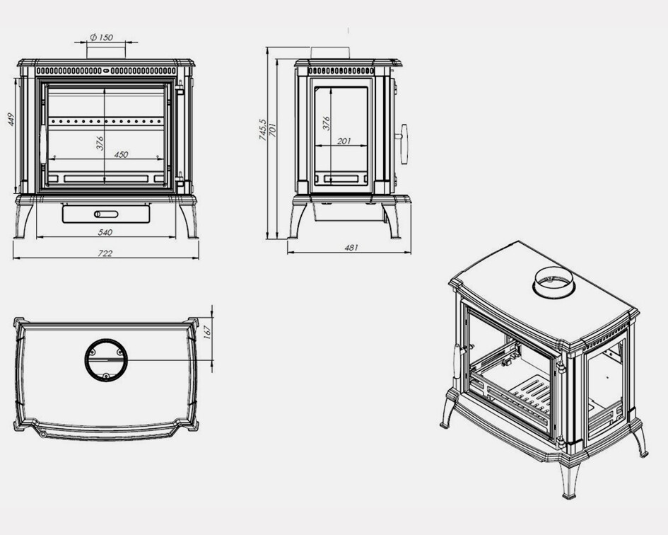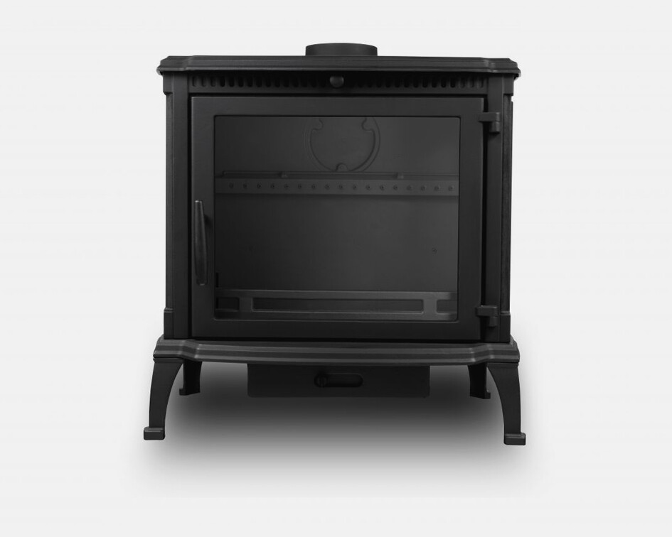 Deze houtkachel heeft zowel een boven- en achter aansluiting.