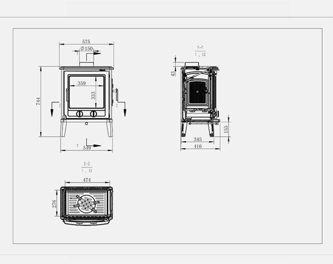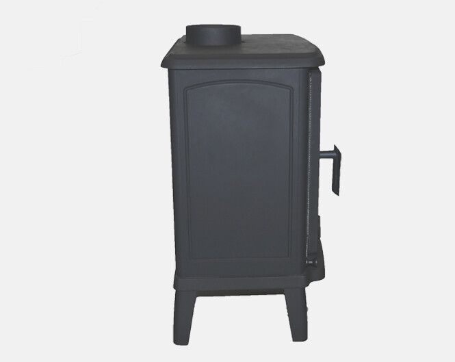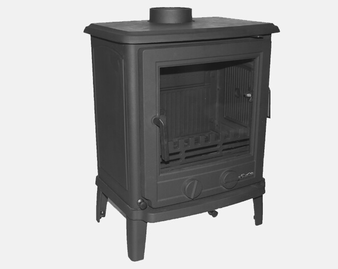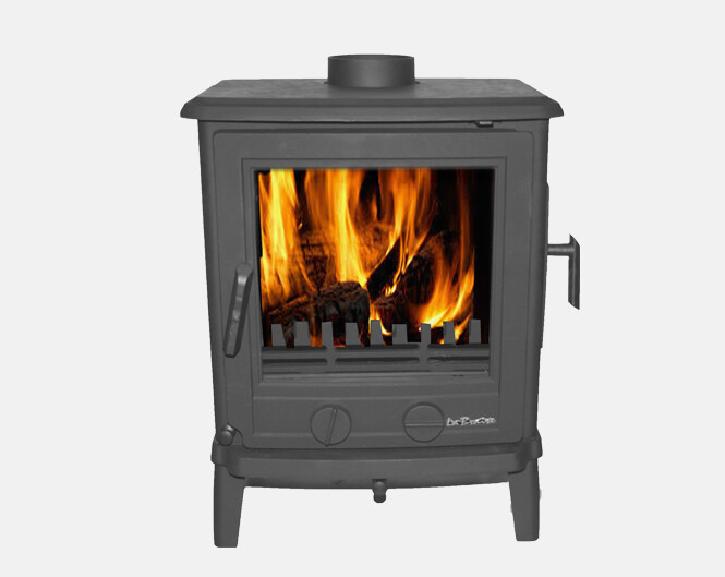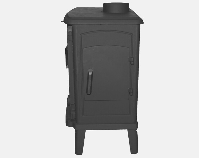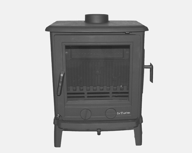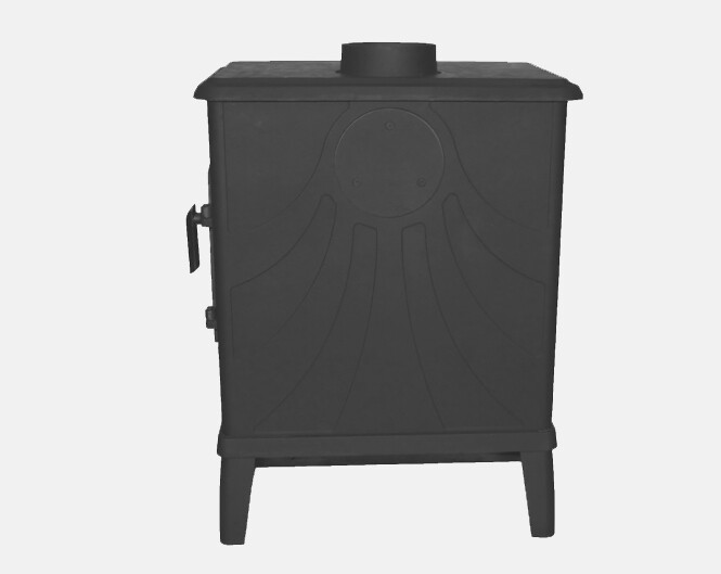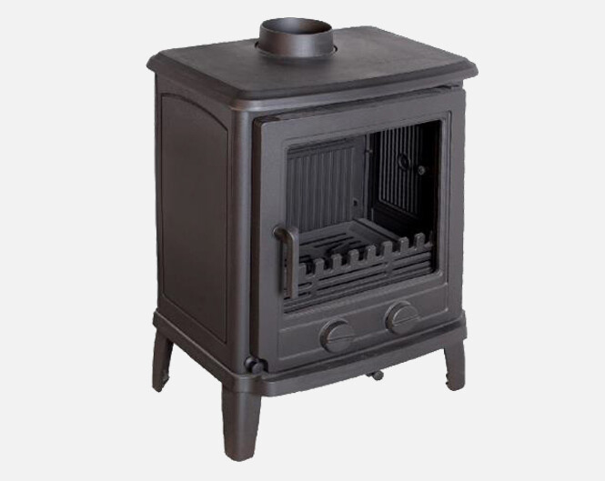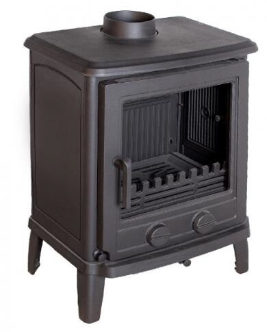 Deze houtkachel heeft zowel een boven- en achter aansluiting.