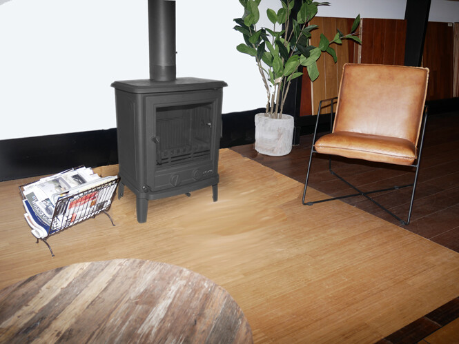 Deze kachel heeft een extra lucht toevoer aan de onderkant om extra lucht te kunnen aanzuigen.