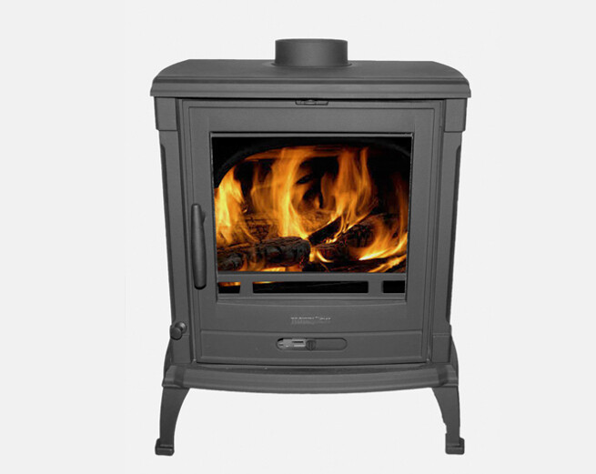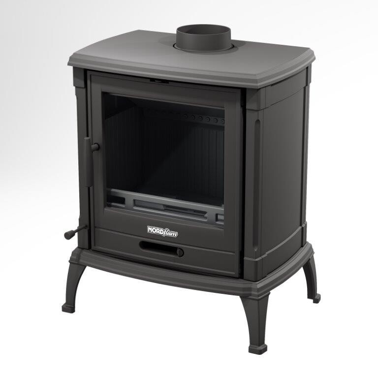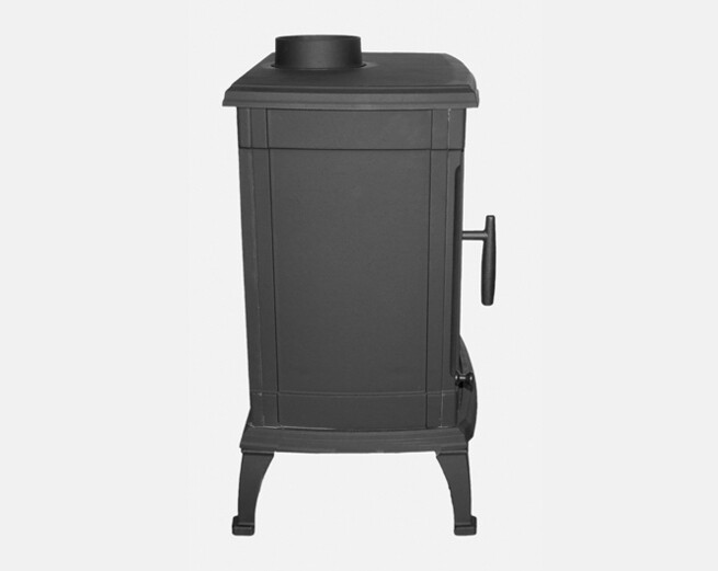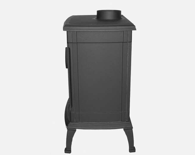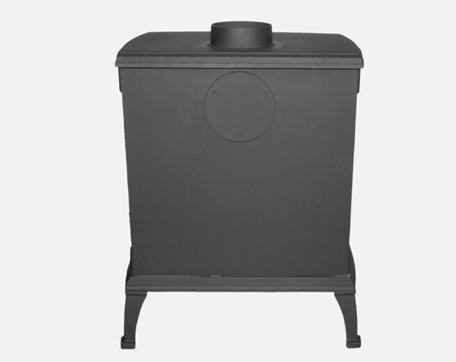 Deze houtkachel heeft zowel een boven- en achter aansluiting.