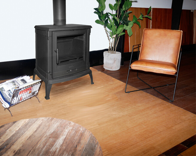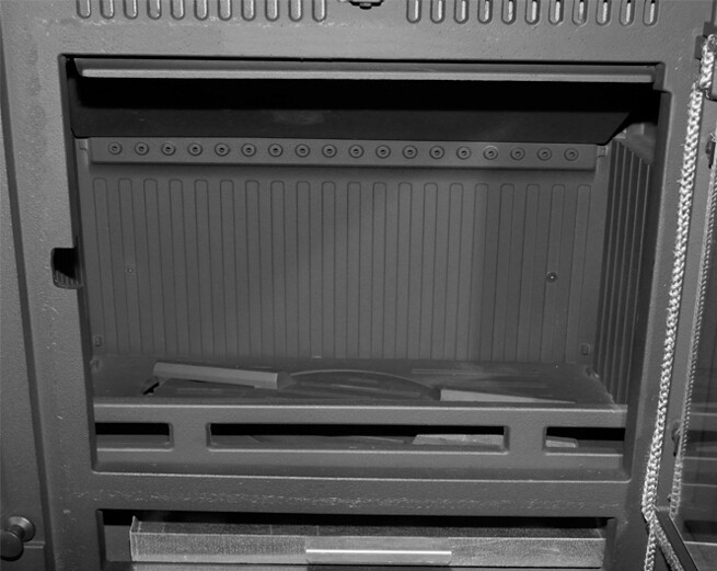 Deze kachel heeft een extra lucht toevoer aan de onderkant om extra lucht te kunnen aanzuigen.