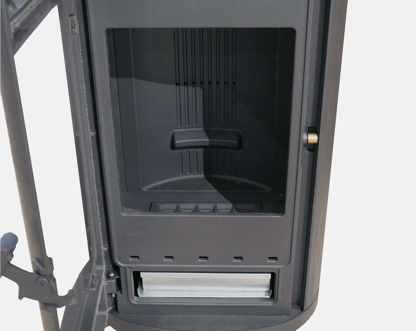 De houtkachel wordt bediend met 1 knop/schuif, hiermee wordt de lucht van achter de kachel aangezogen en verdeeld in de houtkachel gebracht. Ook geeft deze houtkachel van 89KG gietijzer een behaaglijke warmte waarmee een ruimte tot ca. 100 m3 te verwarmen is. Deze kachel heeft een degelijk brandbed waarop gestookt wordt, een aslade en een keerplaat boven de kachel. De kachel is optioneel aan te sluiten op een externe luchttoevoer met diameter 86mm.