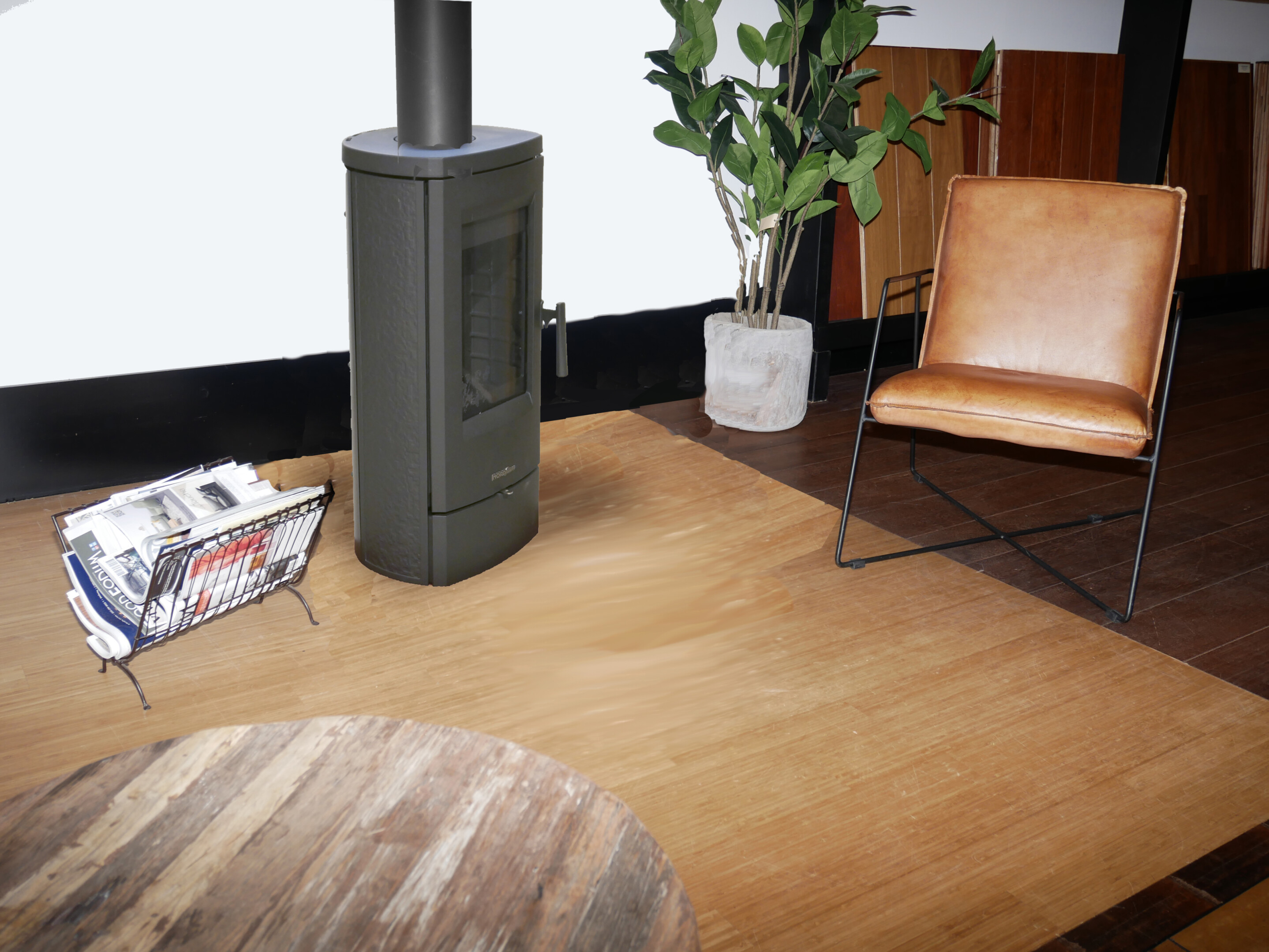Deze houtkachel heeft alleen een bovenaansluiting.