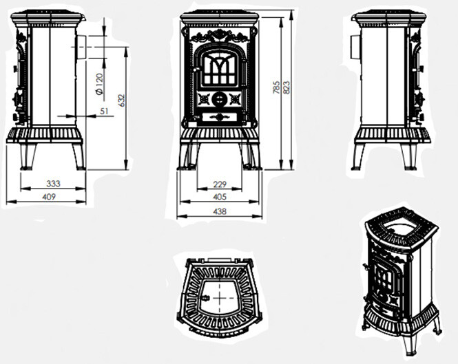 De afmetingen van deze houtkachel zijn:
