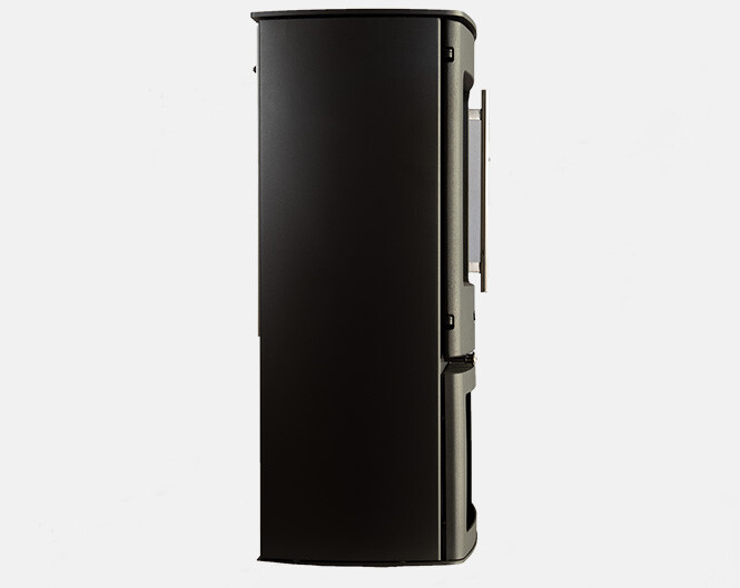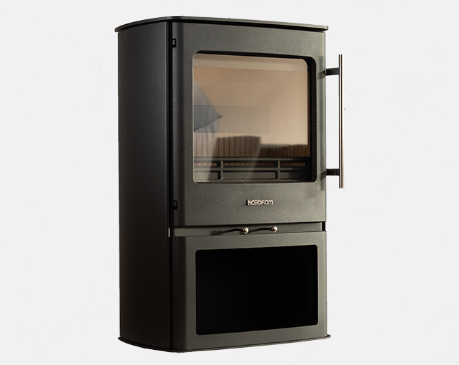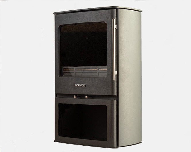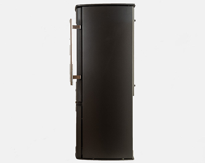 Deze houtkachel heeft zowel een bovenaan- als achtersluiting.