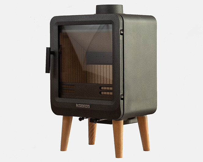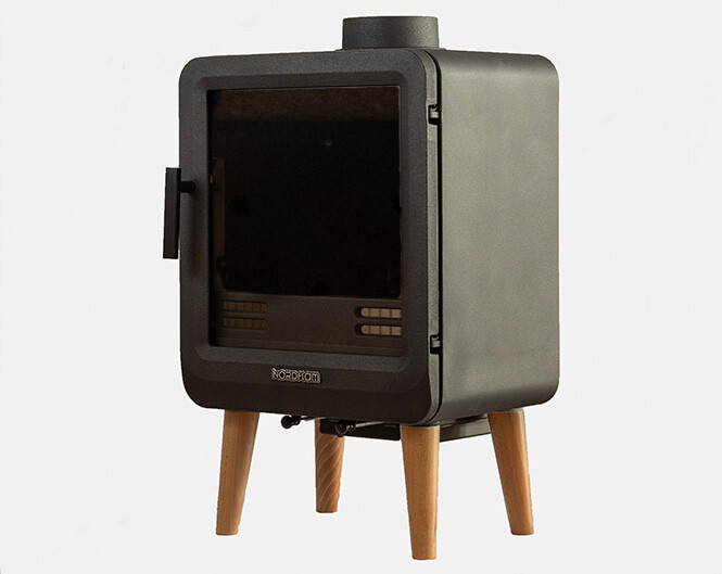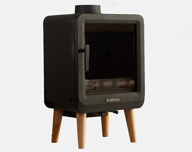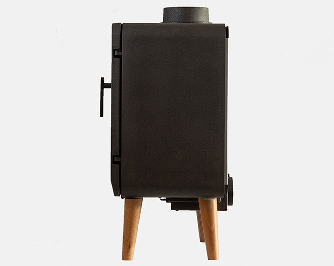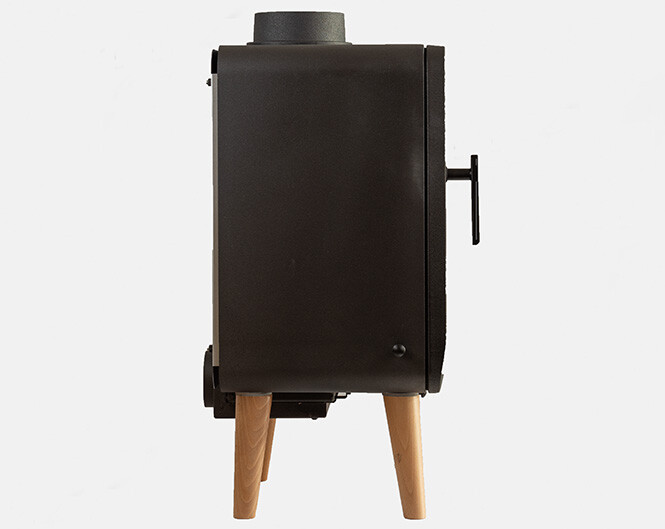 Deze houtkachel heeft zowel een bovenaan- als achtersluiting.