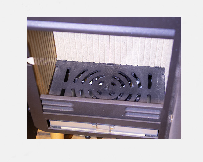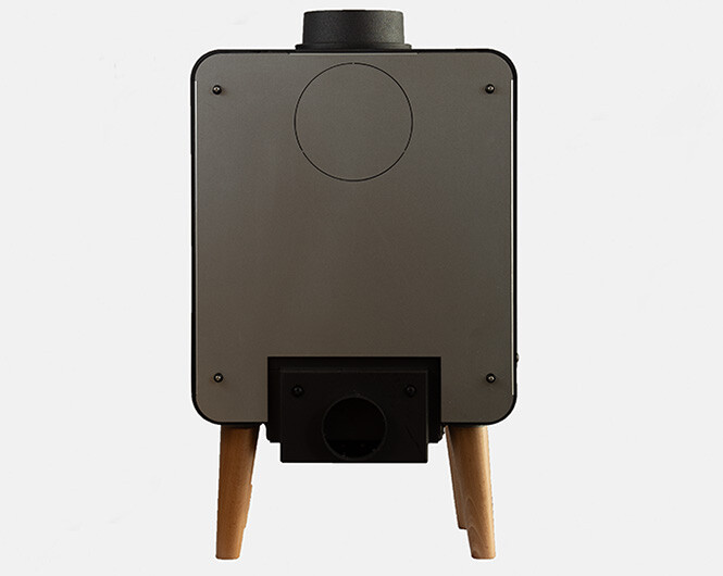 De houtkachel is voorzien van een confectieplaat aan de achterkant voor meer rendement en minder hittestraling naar achteren.