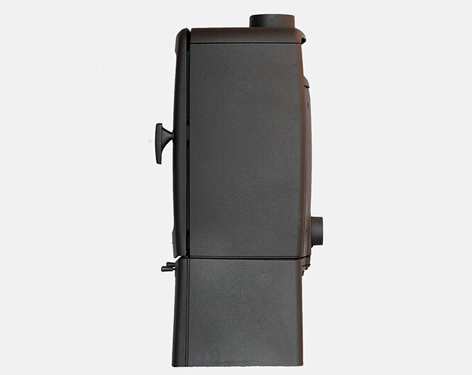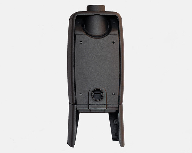 De lucht wordt volledig vanaf de achterkant aangezogen en verdeeld de kachel ingebracht.
