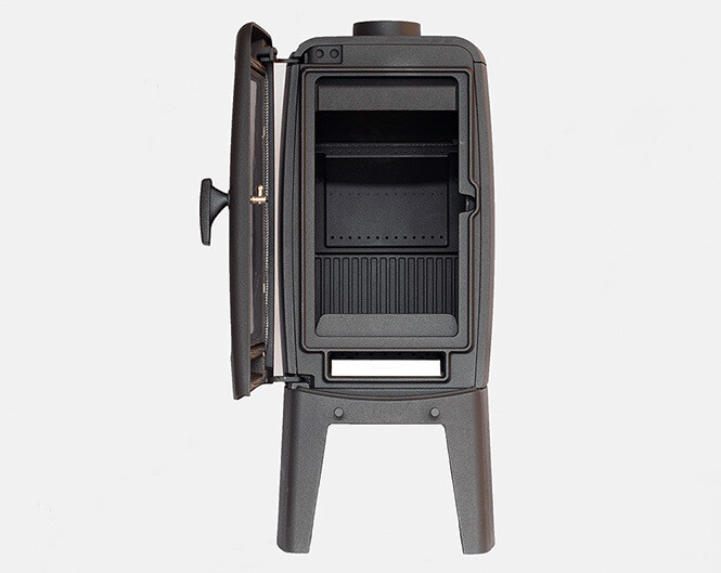 Ook heeft deze houtkachel een stevige gietijzeren deur.