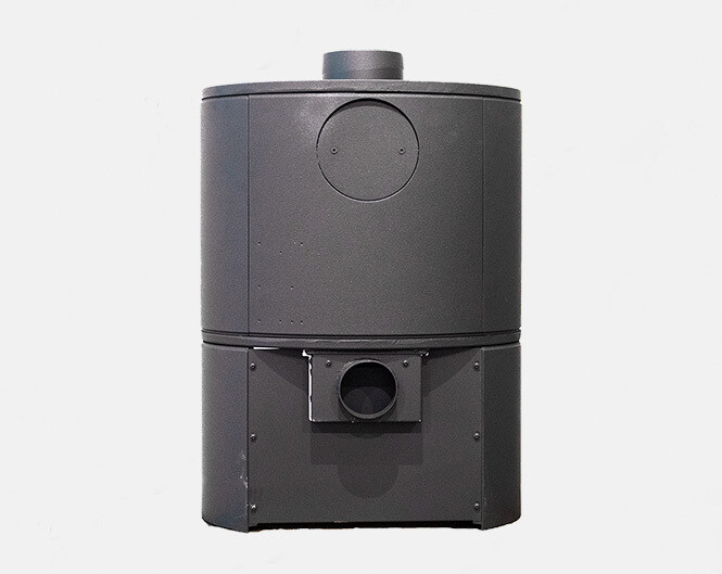 de lucht wordt volledig vanaf de achterkant aangezogen en verdeeld de kachel ingebracht.