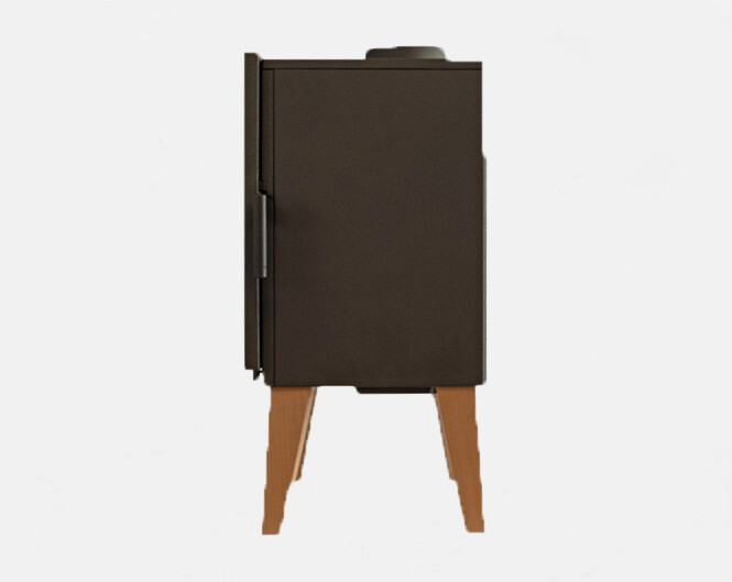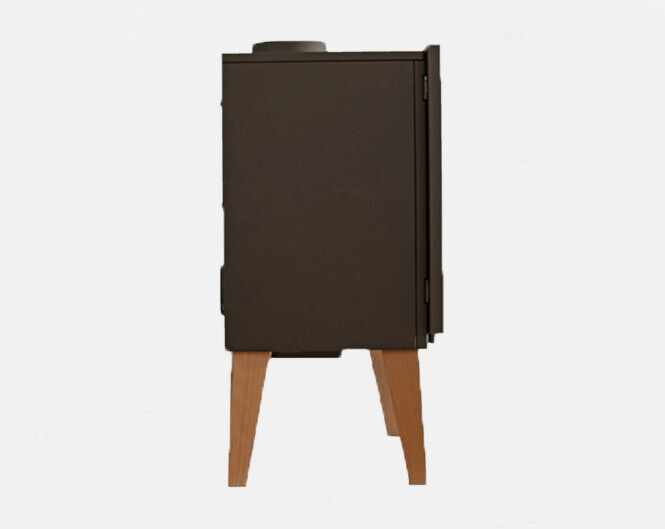De houtkachel is voorzien van een confectieplaat aan de achterkant voor meer rendement en minder hittestraling naar achteren. De kachel heeft een achter uitgang welke optioneel gebruikt kan worden. De kachel heeft een degelijk gietijzeren brandbed waarop gestookt wordt, een aslade onder het rooster en een keerplaat boven de kachel. Ook heeft deze houtkachel een stevige gietijzeren deur met een handvat welke aan de zijkant zit.