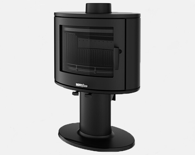 Ook heeft deze houtkachel een stevige gietijzeren deur.