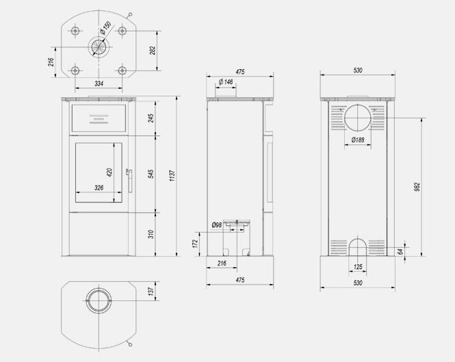 De houtkachel heeft een gewicht van +/- 139 kg.