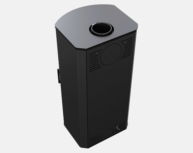 Verbranding van brandstofdeeltjes dankzij twee deflectors die de uitlaat verlengen. Drievoudig verbrandingskamerventilatiesysteem: primaire lucht - toegevoerd onder het rooster; secundaire lucht wordt toegevoerd via openingen in de achterwand. Bovendien maakt de inzet gebruik van een schoon glassysteem (luchtgordijn).