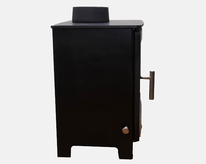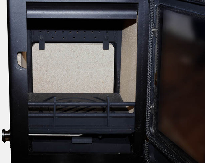 De houtkachel heeft een mooi rendement van 75% bij het stoken van hout en kan oplopen tot 86% bij het stoken van kolen.