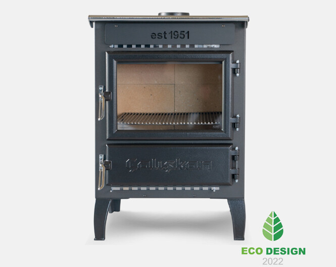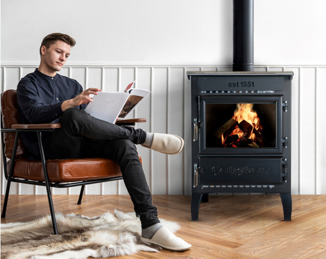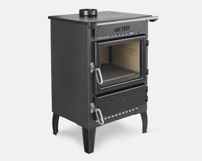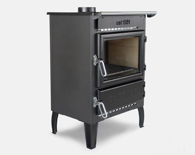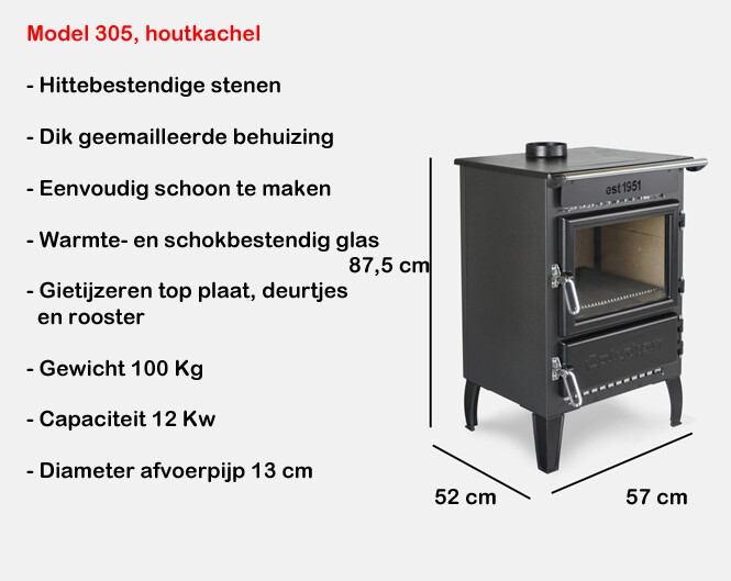 De houtkachel is in de fabriek geëmailleerd.