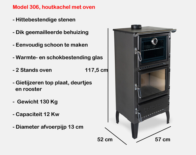 De oven is met 2 verschillende standen regelbaar en voorzien van thermometer. Het binnenwerk en de voorkant zijn bestand tegen hoge temperaturen dankzij het gebruikte materiaal en hoogwaardig staal en vuurvaste stenen. Effectieve verbranding en langer temperatuurbehoud, dankzij de bekleding van de verbrandingskamer met een warmteaccumulerend materiaal dat de temperatuur in de kamer verhoogt.
