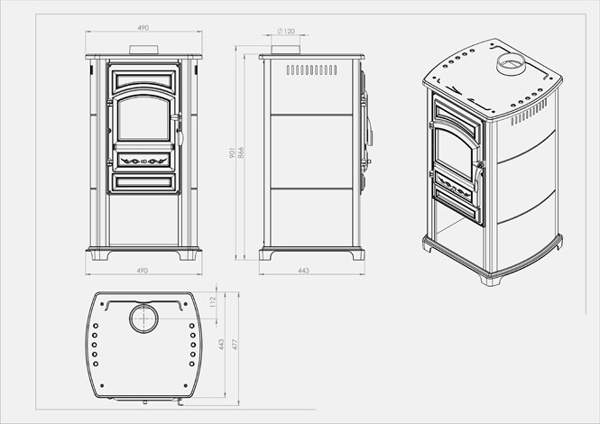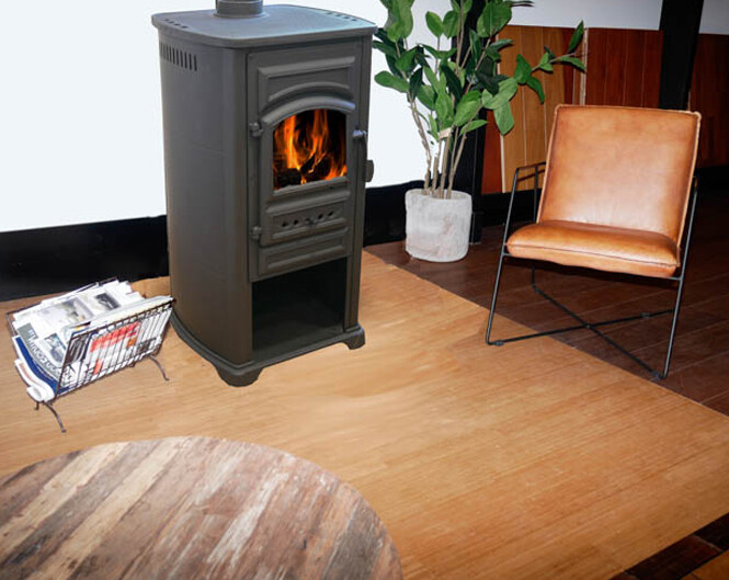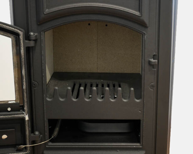 Deze kachel heeft een degelijk brandbed waarop gestookt wordt, een aslade en een keerplaat boven de kachel. De houtkachel is van van dubbelwandig plaatstaal, het deurtje en de bovenplaat gemaakt van gietijzer. Door de dubbele wand geeft deze houtkachel voornamelijk confectiewarmte.