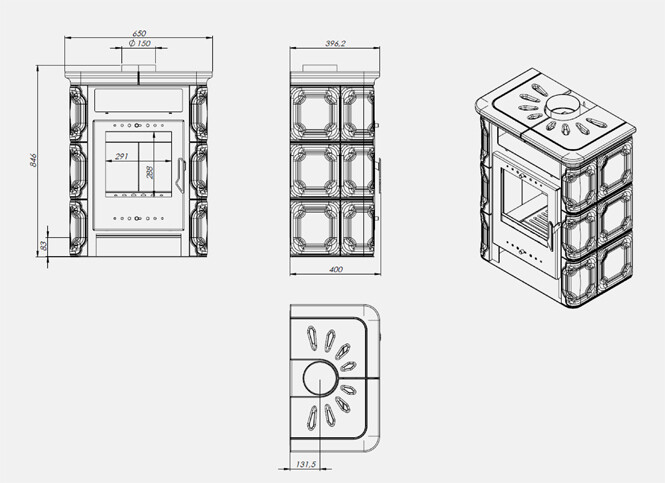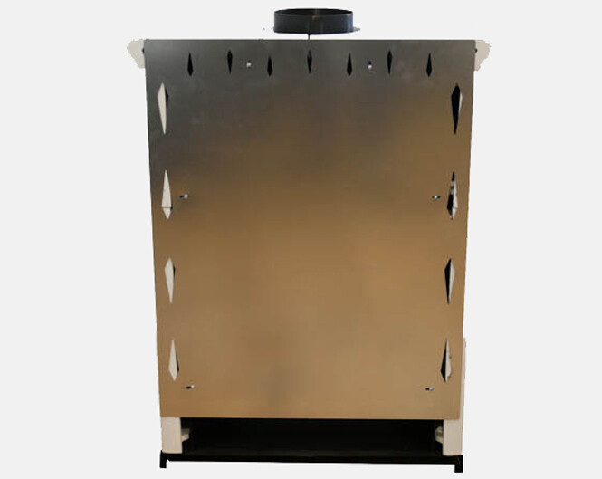 Deze houtkachel met een gewicht van 110KG aan kwalitatief goed ijzer en tegelmateriaal creëert een behaaglijke warmte waarmee een ruimte van 130m3 prima te verwarmen is. Deze kachel heeft een brandbed waarop gestookt wordt, een aslade en een dubbele keerplaat boven de kachel.