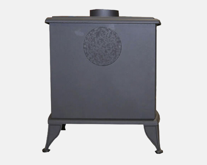 Deze houtkachel heeft zowel een bovenaansluiting als achteraansluiting.