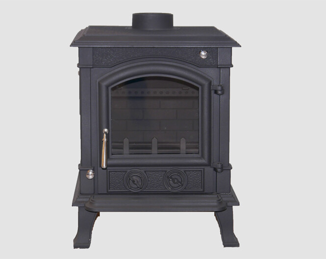 Deze houtkachel heeft zowel een boven- en achter aansluiting.