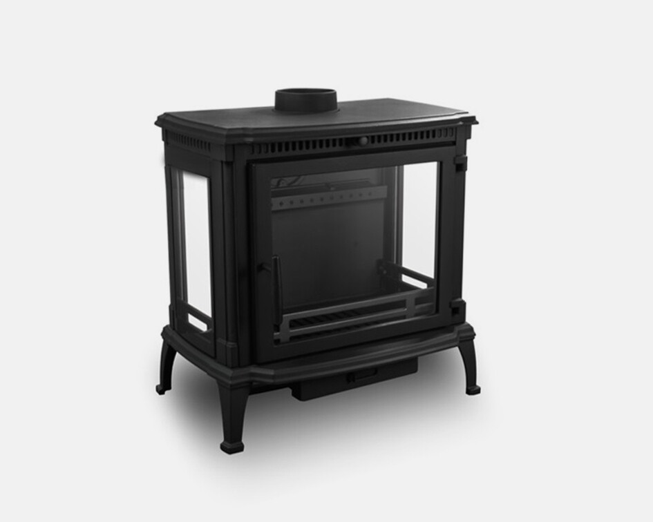 Deze houtkachel heeft zowel een boven- en achter aansluiting.